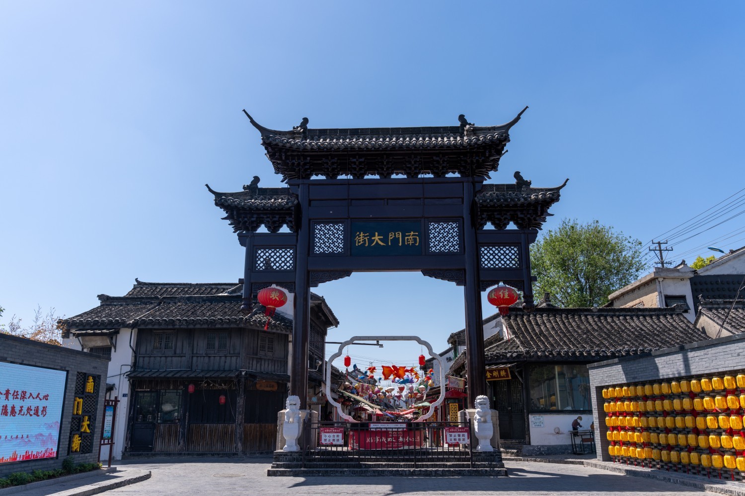 南门大街位于江苏省高邮古城南门外,盂城驿景区西侧,紧临大运河堤,俗称:南门明清一条街,这里曾是明清时期高邮最繁华的历史文化街区。2014年被列为世界遗产(是我国第46个世界遗产的京杭大运河重要组成部分),大街兴建于宋代,繁盛于明清,兴隆于近代,是名副其实的沟通里下河、大运河,襟带苏皖两地的要津。客来运河两岸,货运大江南北,其情其势延续了600多年,直至20世纪40年代前后,因战乱和一场殃及40余家商店的大火肆虐受到重创,渐现萧条。建国后,随着1993年至1995年高邮市人民政府修缮盂城驿时,对南门大街一并进行了整治修复,修复如旧,再现生机的街道全长约230米,有各类商铺40余家,已成为展示高邮物产和风土人情的一张名片。