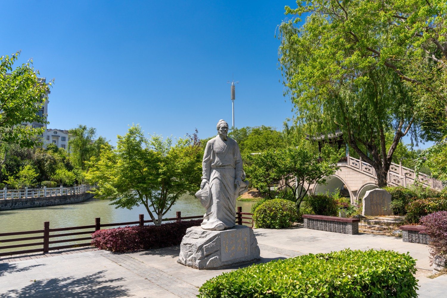 这边您看到的是文天祥广场,文天祥(1236——1283),吉水(今江西)人,南宋忠烈大臣,右丞相、文学家、民族英雄。他的诗句:“人生自古谁无死,留取丹心照汗青。”表明他坚持民族气节至死不变的决心。据史料记载,德佑二年(1276年),文天祥被任命为右丞相兼枢密使出使议和,遭元军扣押,后在镇江得以逃脱路过高邮,他为了不给城区带来扰乱,就隐蔽在这城外的马饮塘,后来从这马饮塘逃走,到了通州。在高邮避难期间文天祥还留下很多诗篇对高邮的记载。为更好地纪念他,便在他曾经停留过的地方打造了文天祥广场,屹立河畔的南宋忠烈文天祥的雕塑栩栩如生,《高邮怀旧》《发高邮》《发高沙》《至高沙》等4块古诗词石刻记录了文天祥与高邮的难舍之缘。