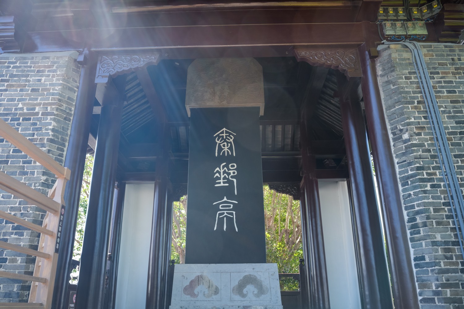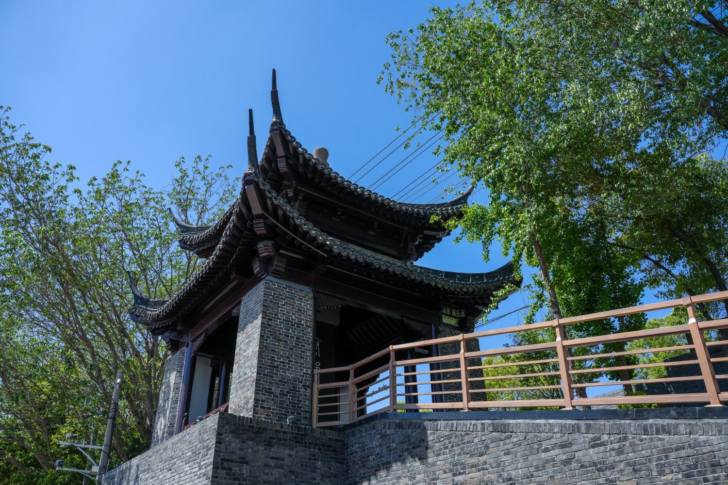 据《高邮州志》记载,公元前223年,秦王嬴政在此处“筑高台、置邮亭”, 故名高邮,亦称秦邮。邮亭既是传达政令、管理邮驿通信事务的机构,又是地方小的行政单位,十里一长亭,设有亭长,掌管征税赋役、缉捕盗贼相关事务,同时又是行旅馆舍。秦邮亭的建立带来了高邮2000多年的发展与繁荣,有极高的历史研究价值。1997年,高邮市政府于盂城驿旁的运河大堤上重建秦邮亭,粉墙黛瓦、重檐翘角,它每角有石柱3根,共12根。亭四面开敞,内有约三米高的石碑,正面题“秦邮亭”三个大字,背面刻有“重建秦邮亭碑记”, 秦邮亭的碑碣上阴文镌刻着我市朱延庆先生记叙了秦王(嬴政)在古邗沟边,设立邮亭的这段难忘历史。